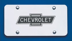Chevrolet style logo in chrome mounted on a mirror polished stainless steel. Vehicle specific hardware and theft deterrent caps. Front plate replacement lets everyone know you take pride in your Chevrolet