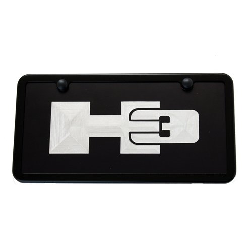 - Custom Hummer H3 Black License Plate Tag and Black License Plate Frame. Official Hummer Licensed Product ® Made in the USA - Black Satin Hummer H3 License Plate Tag with a pair of Snap Cap Screw Covers and a Fastener Kit. Go ahead, proudly install this Hummer H3 license plate that features High-End Satin Black Finish, Hand Engraved Licensed Logo in to the solid Aluminum Plate, Epoxy filled Clear Resign (Not Paint) then baked overnight to give you years of service that Hummer H3 should have.