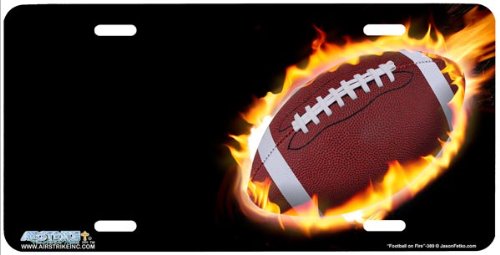 "389-"Football on Fire" Sports License Plates Car Auto Novelty Front Tag by Jason Fetko from Airstrike" Feature